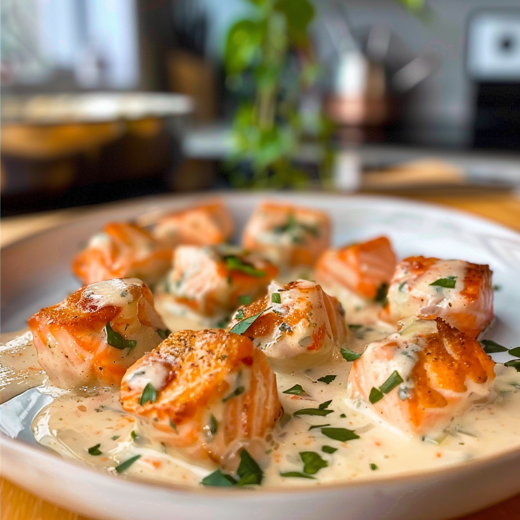 Irresistible Salmon Bites with Garlic Cream Sauce Recipe