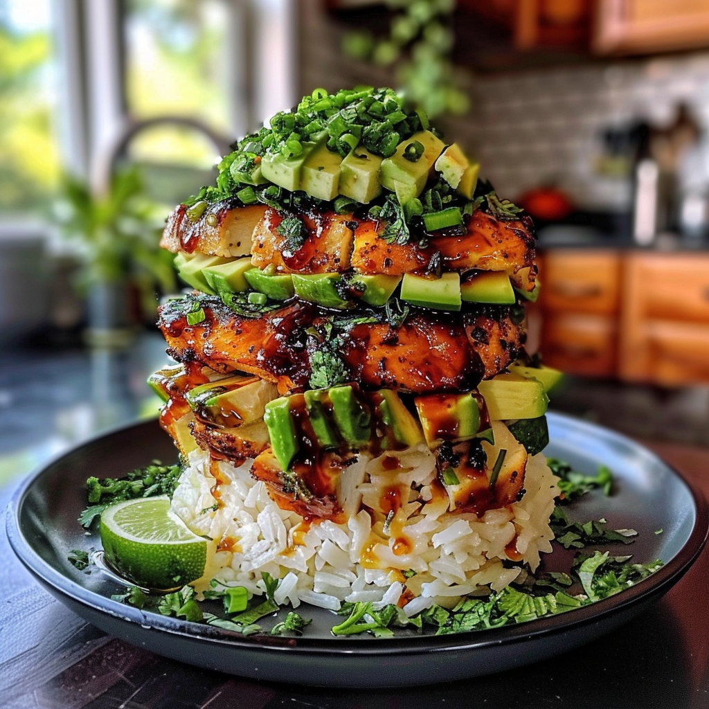 Irresistible Honey Lime Chicken and Avocado Rice Stack