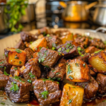 This dish brings back memories of cozy family dinners where we all gathered around the table, fighting over the last piece of beef and those irresistible potatoes. Whether it’s a weeknight meal or a special occasion, Garlic Butter Beef Bites with Potatoes is sure to impress everyone at your dinner table.